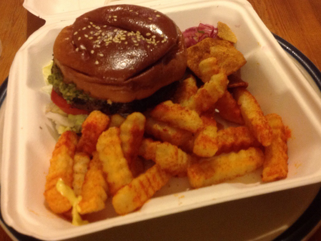 And they did today. It was not even 6 pm and the restaurant was already busy. I chose the not very Mexican hamberguesa, but with Mole Verde: a blended sauce of pickled jalapeño, pepita, cilantro, green onion & garlic. And papas fritas of course.