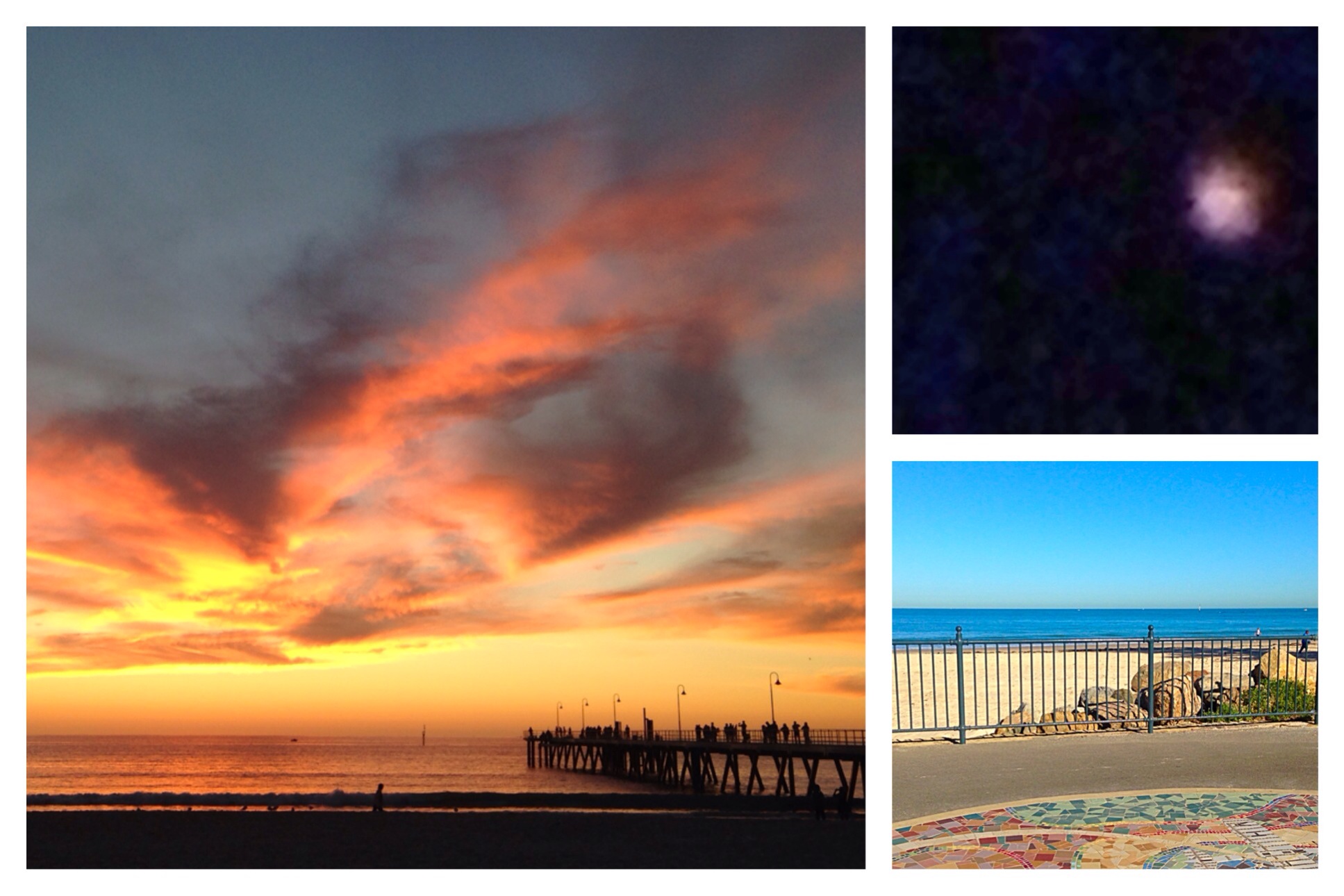 The rippled cloud formation proved a perfect canvas for the sunset; an aerial spectrum from pink to peach until the normally sky blue sea turned purple. Then it was the moon’s turn, slightly obscured by cloud, but definitely red. We watched the lunar eclipse from our lounge room in the dark with a glass of Pinot Noir. It seemed appropriate.