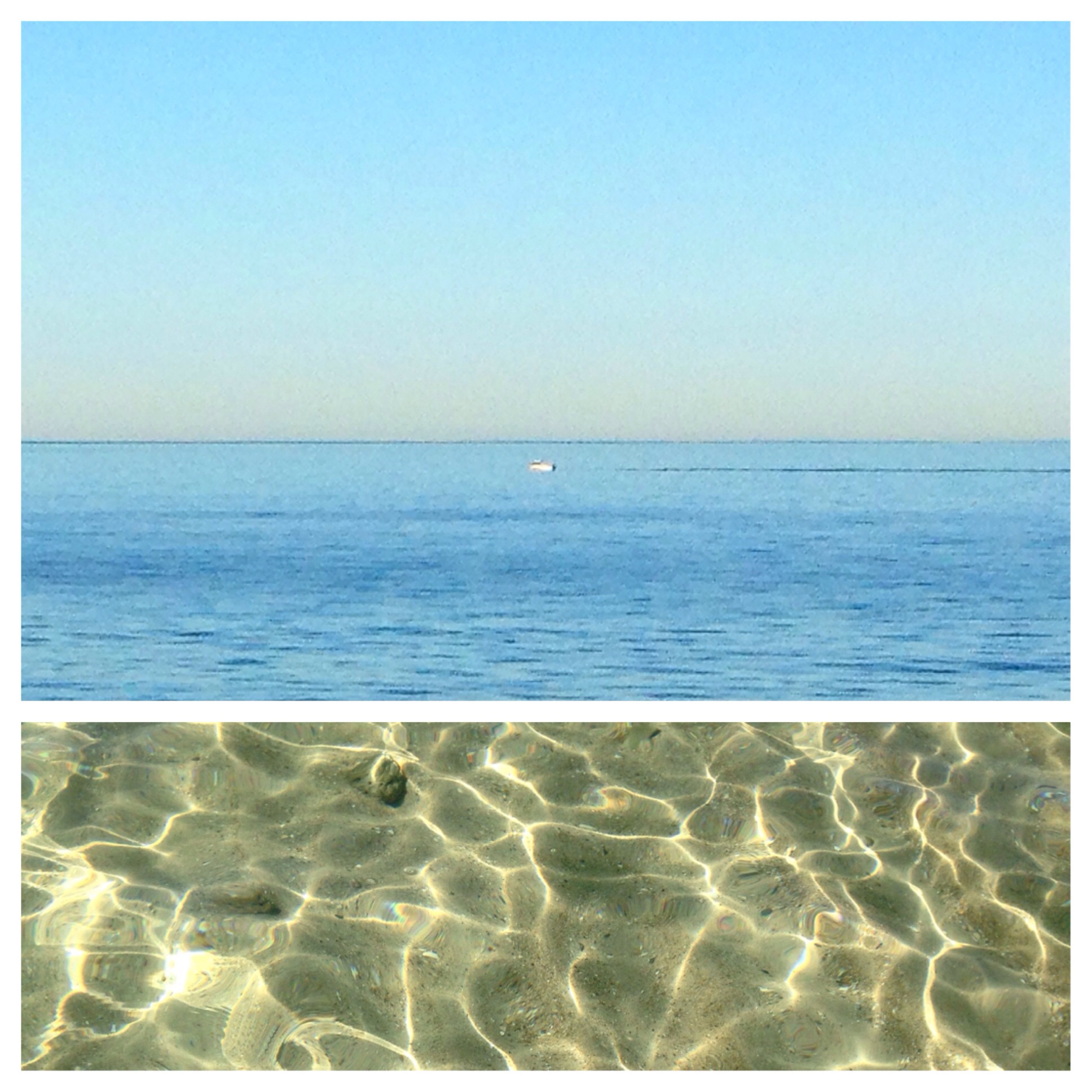 So many shades representing the deep. There are days when the sky and the improbably sky-blue sea are indistinguishable; stormier times when the tones are deeper, darker, more menacing, frothing with rage; sunsets when the sun’s final flares turn the waters red and purple; or the shimmering of mercury or silver in the full heat of the afternoon. It’s as if the ocean has a wardrobe of many colours and textures with which to clothe itself.