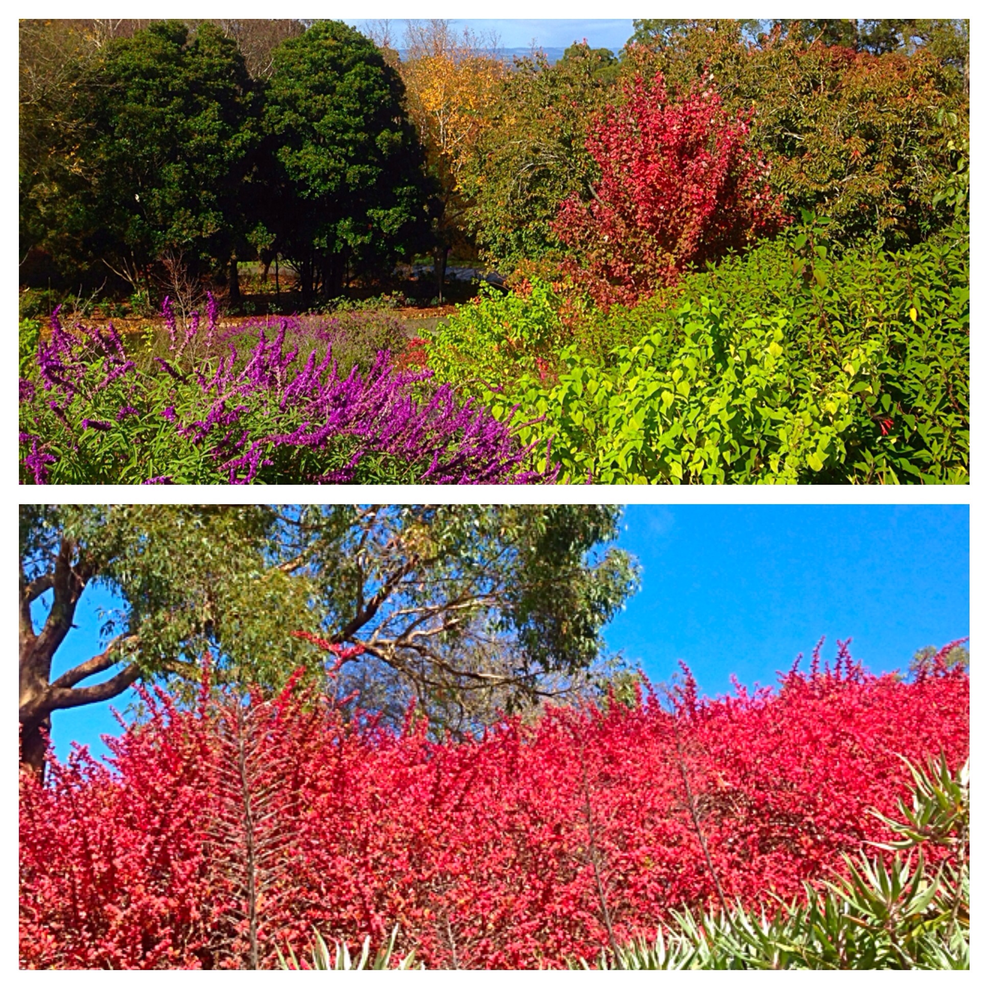 Here by the beach, although we have four seasons, they can be a bit indistinct. Not so in the Adelaide Hills, just a few km up the freeway. At this time if year everyone is flocking to the Mount Lofty (yes, a great name) Botantic Gardens, for the vibrant autumn colours. Here you could be in England, if it were not for the eucalypts and other native flora ( and the blue sky). Enjoy nature’s spectacular show as the botanic year ends in a explosion of colour.