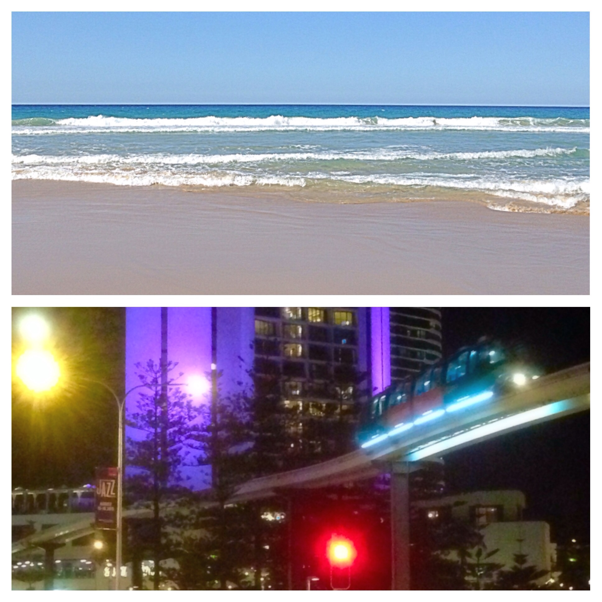 On the street, towering skyscrapers dominate the horizon, many of them with striking (and expensive) fibonacci architecture, with the occasional half-hidden surfie flophouse bound to the earth like fungus around a tree. It’s still Australia, but only just. It feels more like America, like Miami without the Art Deco. Almost everything is new, apart from the tired old monorail which for $4 takes you the ridiculously short journey from Jupiter’s Casino resort to the beach (although I loved it!).