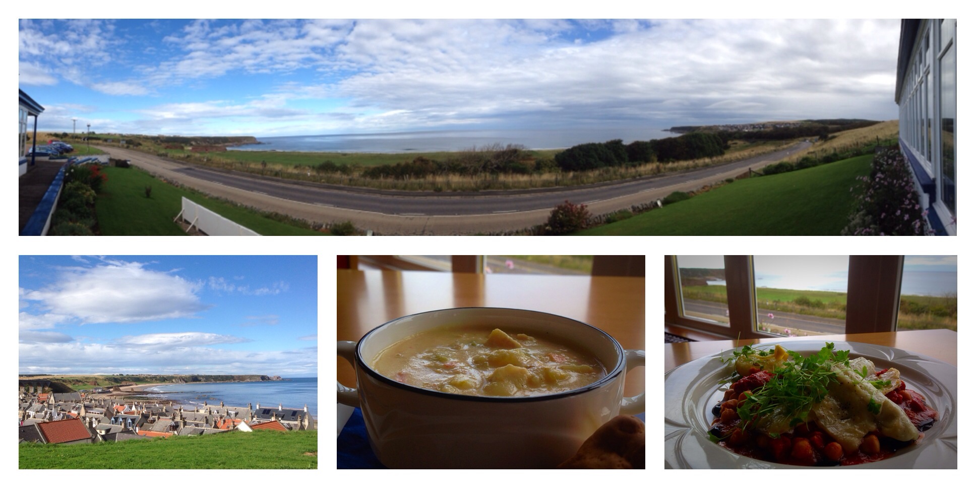 Imagine eating the most regional dish in its exact place of origin, overlooking the bay and the fields which yielded the produce. That’s my experience at the aptly named Cullen Bay Hotel in the North East of Scotland. This is the home of the famous Cullen skink, a kind of smoked fish chowder. Even better, I am eating (drinking is hardly an appropriate word for the consumption of this viscous deliciousness) skink with a twist, winner of the national Cullen skink championship. The twist is the saucy addition of sweet potato, chilli, molasses and brandy. Nae bad for a lunch snack, followed by sea bream. Yes, I am eating fish.