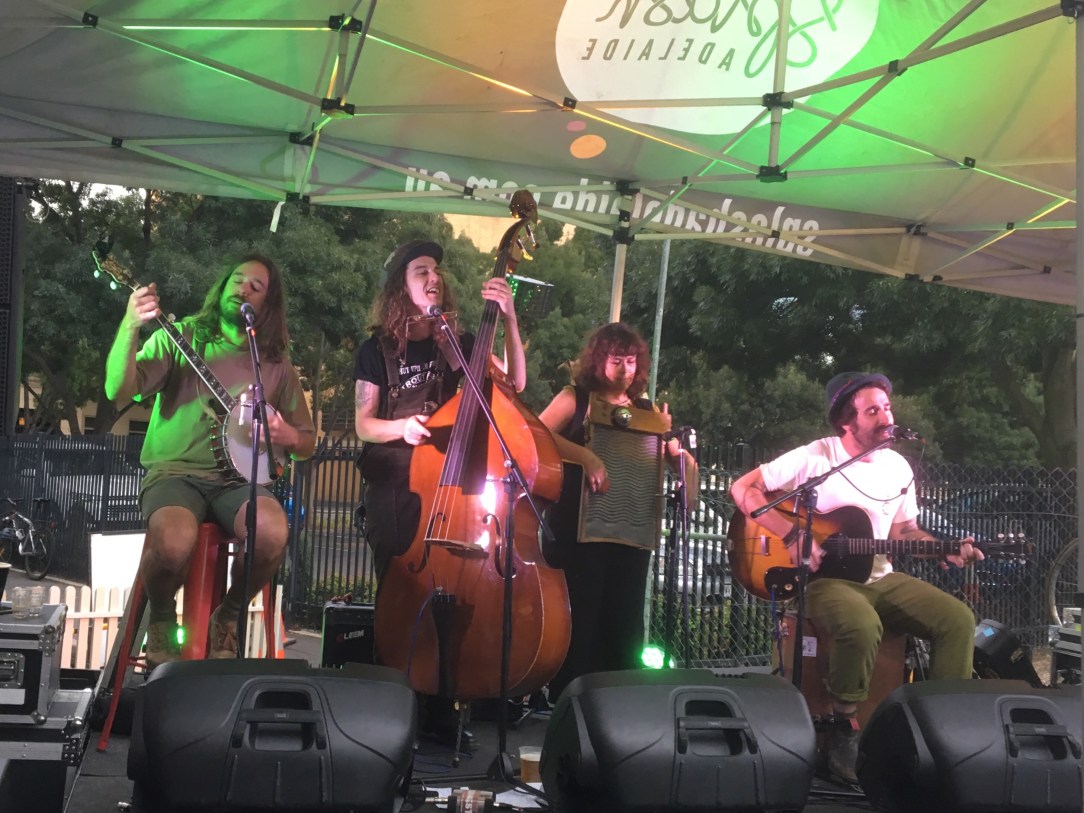 Our Paddy’s Day began with a short bike ride to Giles Street School for a “democracy sausage” and to vote as it was state election day. Unfortunately the sausage sizzle had long since departed by the time the last votes were cast. Civic duty completed, it was now time for our cultural duties. At the Brecknock Hotel, one of the few Irish pubs still left, we ran into old friends and made some new ones over Magners and Kilkenny. Choosing the organic over the organised, we eschewed the “official” celebrations at the Adelaide Oval, and rather headed for a street party in Mill Street. Hosted by cocktail bar 55 Ml with food by Cafe Troppo, the street was awash with green. Irish bands played on a small stage and the craic and
