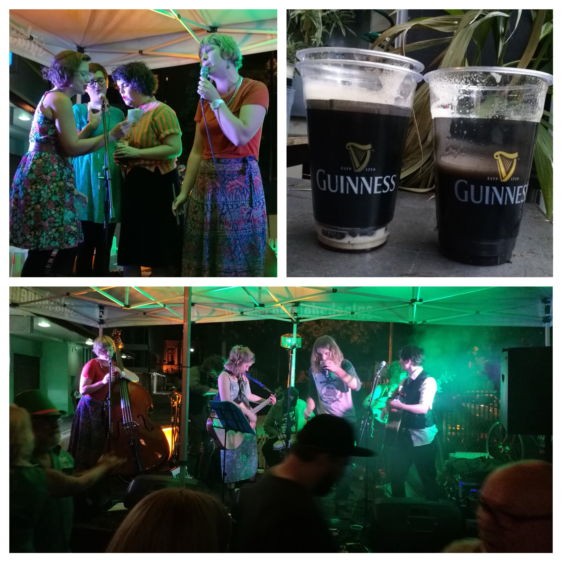Guinness were flowing freely. The obligatory barbecue offered kangaroo “hop dogs”, Guinness and mushroom pies for the veggies, and also potato skewers. Yes, no hibernian cliche left unsaid here. Indeed, judging by the chatter, nothing was left unsaid by anyone. On stage fiddles, whistles, banjos and accordions combined in a joyful cacophony as the happy crowd danced and sang along with the band who wouldn’t stop playing. Multiple renditions of Whiskey in the Jar, Dirty Old Town and the Wild Rover only served to increase audience enthusiasm on this day when we’d all rather be Irish. And, at least for a day, we can be.
