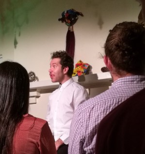 Finally, Nikola and I was a dramatic mash-up of psychaedelia, esoterica, the life and science of Nikola Tesla (the man who gave us AC power transmission), conspiracy theories and the real life of writer-actor David Geddes. That this one-man show was performed in the actor’s maternal home – actually we learned later, in his bedroom transformed into a studio theatre- added to the surreality. With a virtuoso four character performance: Nikola, the actor as self, a spirit guide and a shaman, it was almost possible for a moment to believe in the Great Pyramids as electrical transmission devices or in the notoriously conspiratorial “Philadelphia Experiment” (you’ll have to look that one up yourself). The deepest moments however were reserved for the actor’s self musing on the nature and limitations of linear time. This show was truly mind-bending and without any drugs whatsoever. For a moment, we felt like we glimpsed something universally profound without consciously knowing what it was. Later in the week, at the Fringe Club, we bumped into the actor – forever to be known as Nik- and further explored the limits of science, knowledge (which is what science is), time, space, art, life, and beer.