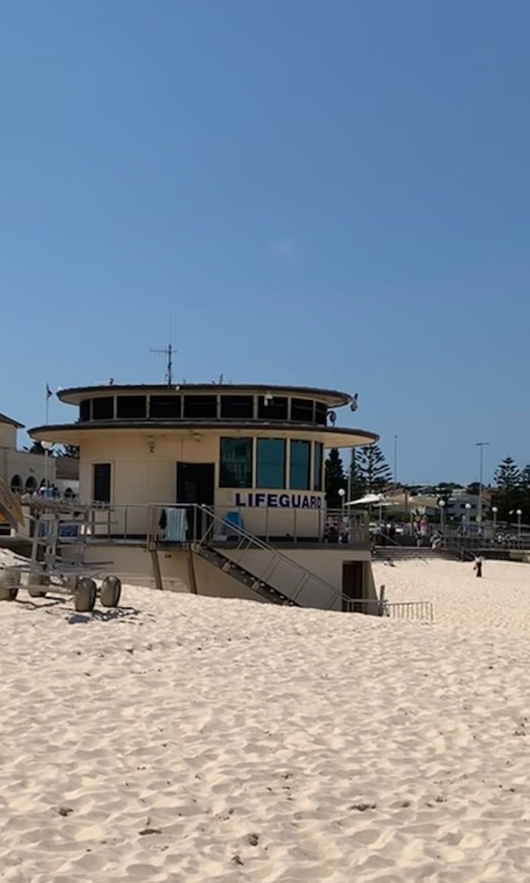 Suddenly the ocean comes into view and the excitement intensifies. The perfect horseshoe of Bondi Beach is arrayed before us. Everyone piles off the bus and heads beachward or to the cafes and souvenir shops of Campbell Parade. A group of trainee surf lifesavers are exercising and playing trust games on the foreshore. Tourists are snapping like sharks on their cameras and phones, biting anything that moves. Business men and women in smart attire are taking time out from the office on the sand. There is the iconic surf lifesaving station. The ocean is calm but still producing sufficient swell for the surfers. Sunbathers (bakers) are baking. Wave chasers are chasing. It’s the epitome of Aussie life.