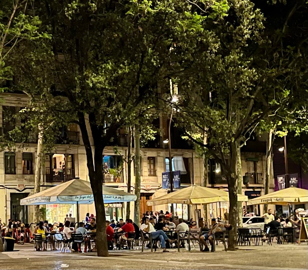 The wide open Rambla de Raval offers al fresco drinking and eating options for all tastes and budgets. Here a mixture of students, young urbanites and migrant families take their leisure as the sun goes down. One side of the square offers mainly Spanish fare- tapas and cocktail bars, along with pizza and burger eateries with some finer dining options. The other side of the plaza is mainly populated with Middle Eastern restaurants serving delicious and surprisingly cheap food- hence the students and families!