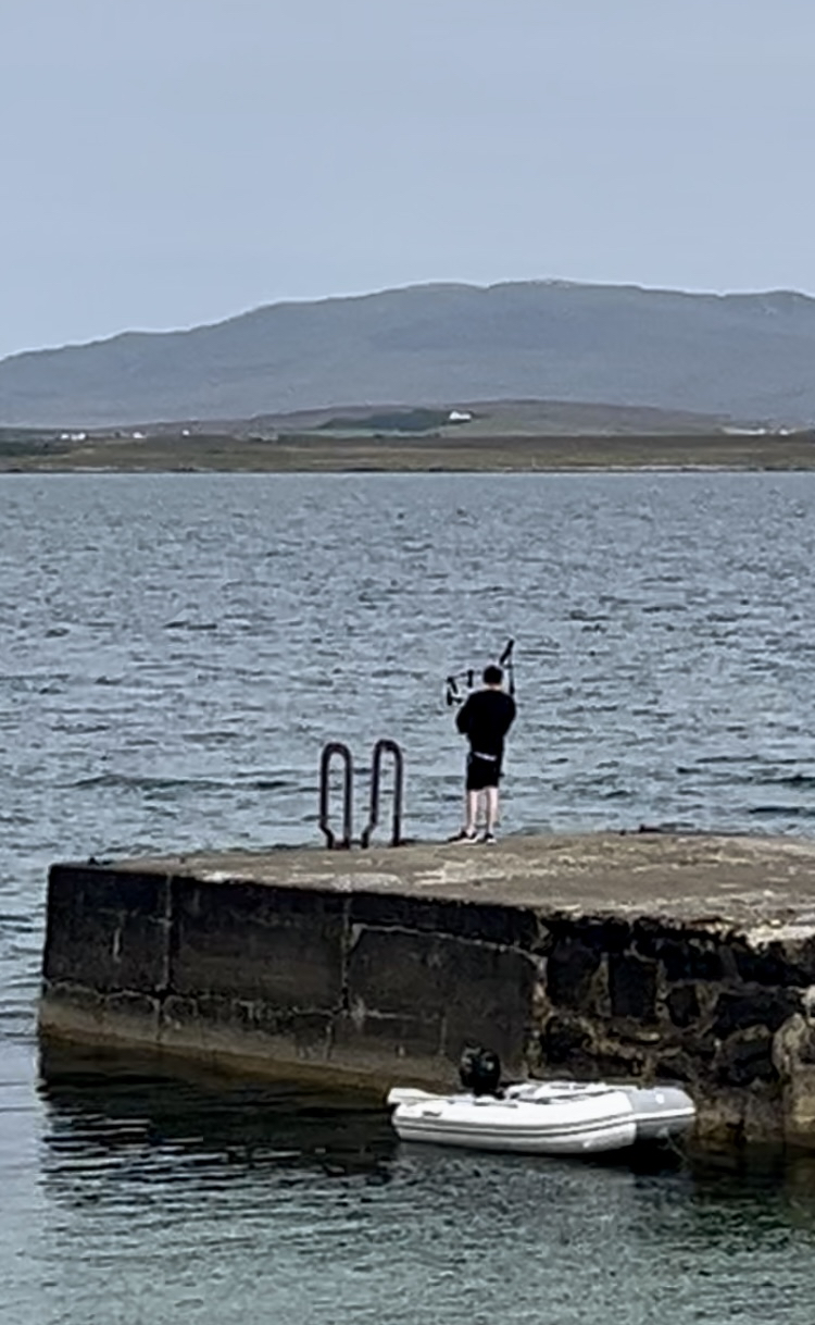Islay doesn’t have the rugged mountain terrain of neighbouring Jura, but it does have sandy beaches, secluded bays, pretty villages, and crafts. Port Charlotte is one such village, containing a shop, museum, pub, lighthouse and a young lad practising his bagpipes on the pier.